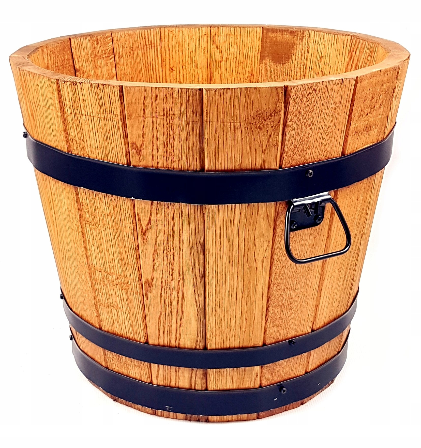 Donica posiada otwór drenażowy w grubym dnie z drewna dębowego.