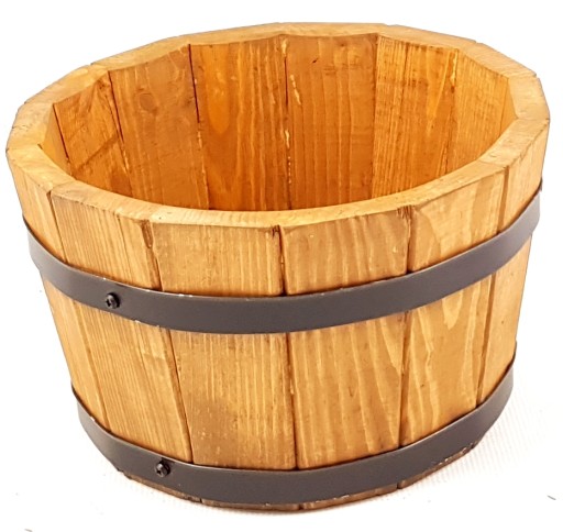 Donica posiada otwór drenażowy w grubym dnie z drewna sosnowego.