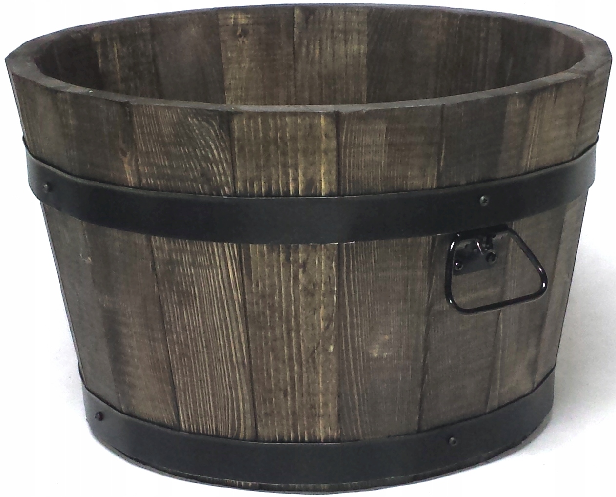 Donica posiada otwór drenażowy w grubym dnie z drewna sosnowego.