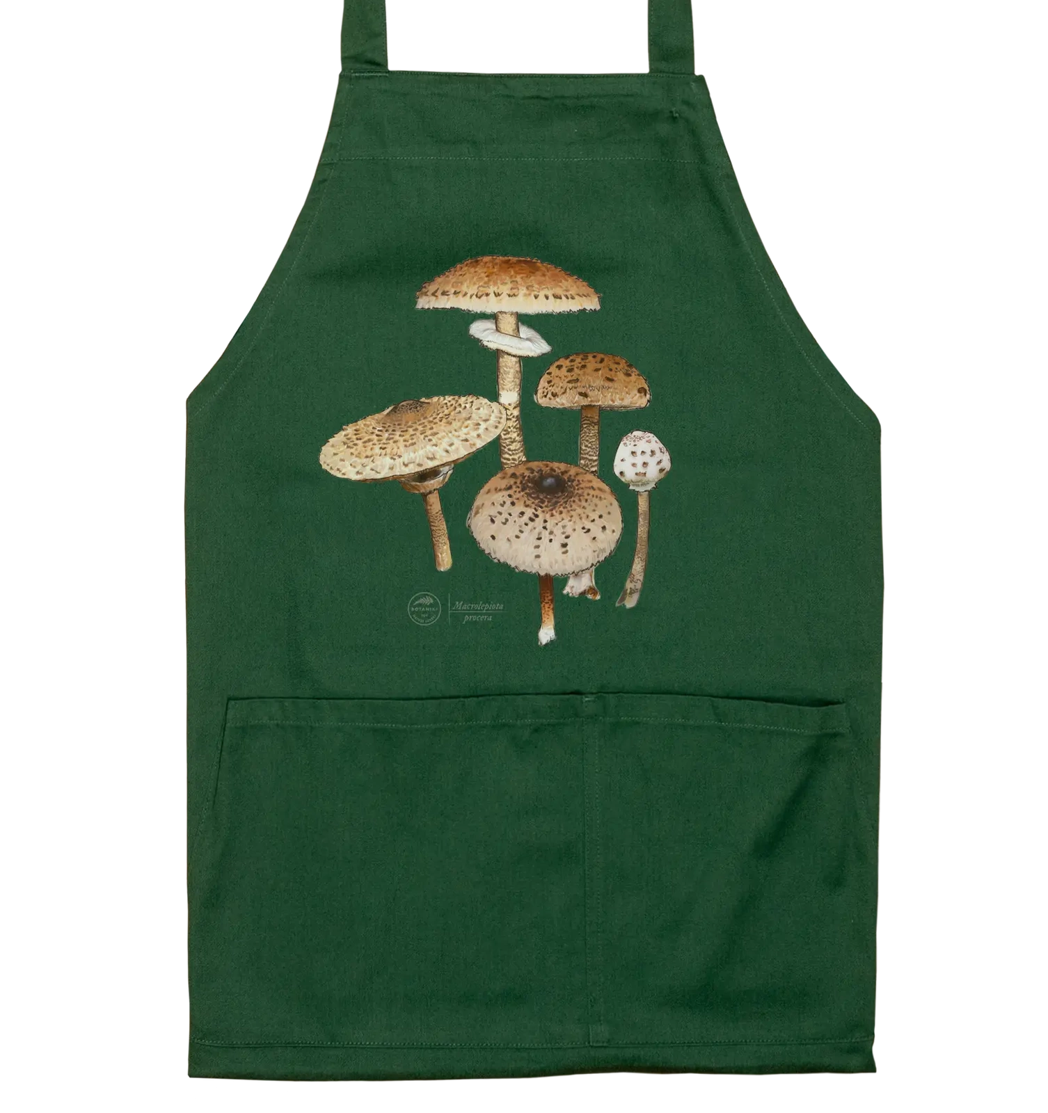 Wyróżnij się w ogrodzie z naszym unikatowym fartuchem! Ten stylowy i praktyczny fartuch zdobi ilustracja czubajki kani, eleganckiego grzyba o charakterystycznym kapeluszu, cenionego za swój smak i wygląd.