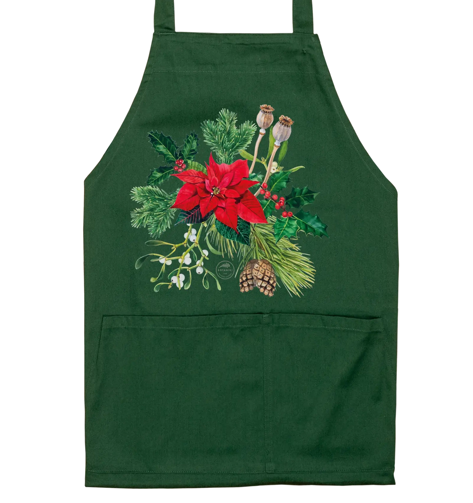 Fartuch ogrodowy Zimowy bukiet: Wilczomlecz, mak lekarski, jodła pospolita, sosna zwyczajna, ostrokrzew