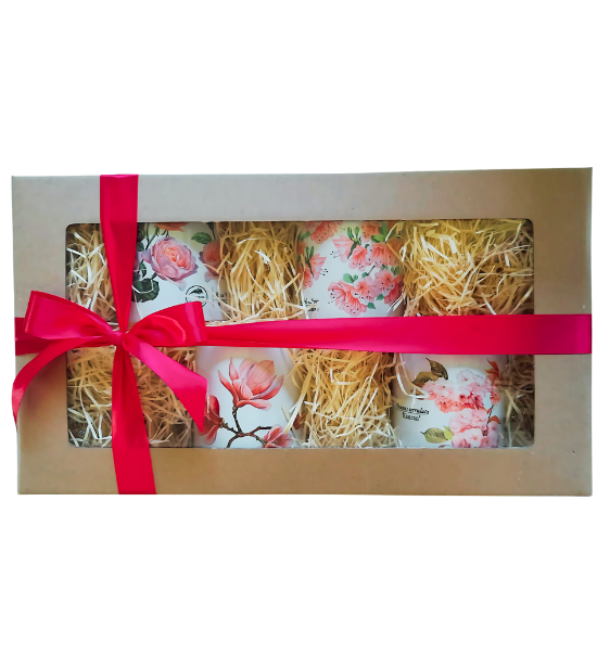 Zestaw prezentowy "Różowe kwiaty" z 4 kubkami (różowa wstążka)
